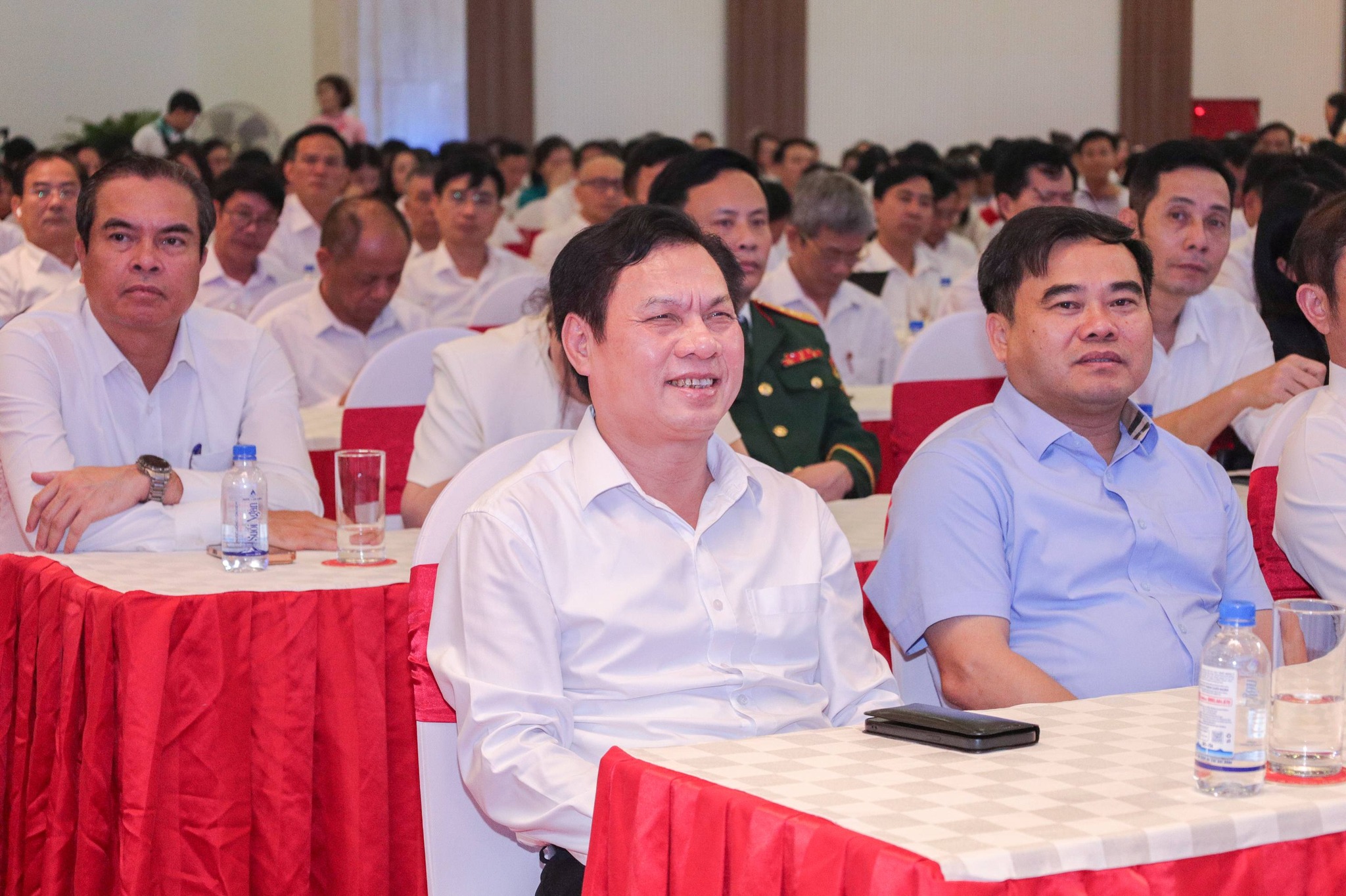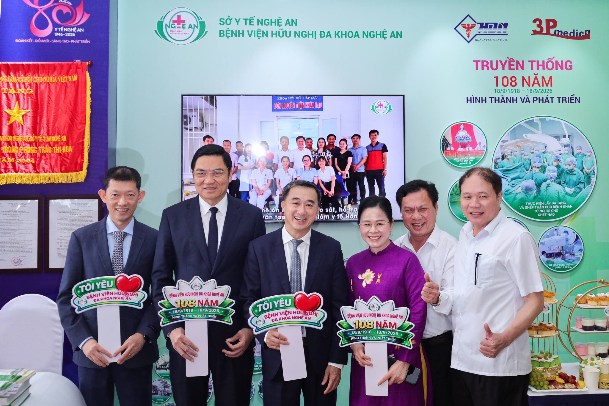 Về phía tỉnh Nghệ An có ông Hoàng Nghĩa Hiếu – Phó Bí thư Thường trực Tỉnh ủy, Chủ tịch HĐND tỉnh; ông Võ Trọng Hải – Phó Bí thư Tỉnh ủy, Chủ tịch UBND tỉnh; bà Võ Thị Minh Sinh – Phó Bí thư Tỉnh ủy, Chủ tịch Ủy ban MTTQ Việt Nam tỉnh; cùng các đồng chí trong Ban Thường vụ Tỉnh ủy, đại diện lãnh đạo các sở, ban, ngành và đông đảo các thế hệ lãnh đạo, thầy thuốc trong toàn ngành Y tế Nghệ An.