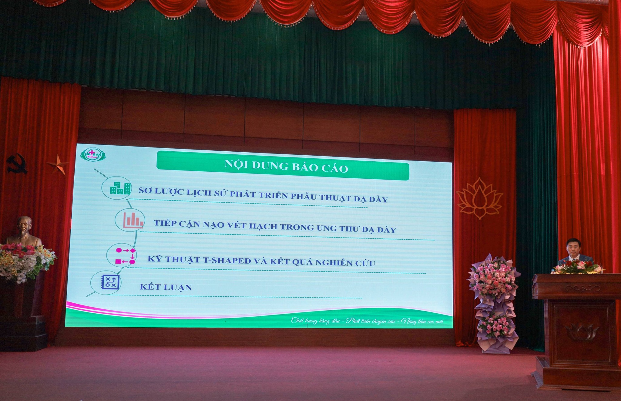 Cập nhật tiếp cận nạo vét hạch trong ung thư dạ dày và kỹ thuật T-shaped nối thực quản–hỗng tràng trong phẫu thuật nội soi cắt toàn bộ dạ dày do ung thư – TS.BS. Đinh Văn Chiến (Ủy viên BCH Chi Hội Ung thư dạ dày Việt Nam, PGĐ Trung tâm ĐT&CĐT, khoa Ngoại tiêu hóa, Bệnh viện HNĐK Nghệ An).