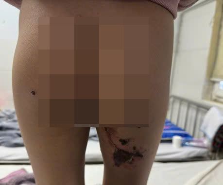 Sau 10 ngày, do vết thương không thuyên giảm, trẻ mới được đưa đi cấp cứu trong tình trạng: Tổn thương bỏng độ 2, 3 vùng mông, vùng kín (tầng sinh môn) và hai bên đùi kèm theo nhiễm trùng nghiêm trọng, xuất hiện hoại tử đen, dịch mủ chảy thấm băng, các vết bỏng dạng giọt bắn tạo thành vảy khô cứng, bên dưới có mủ. Tại Bệnh viện, các bác sĩ đã tiến hành phẫu thuật cắt bỏ phần hoại tử, thay băng, đồng thời sử dụng thuốc kháng sinh và thuốc giảm đau cho bệnh nhi.