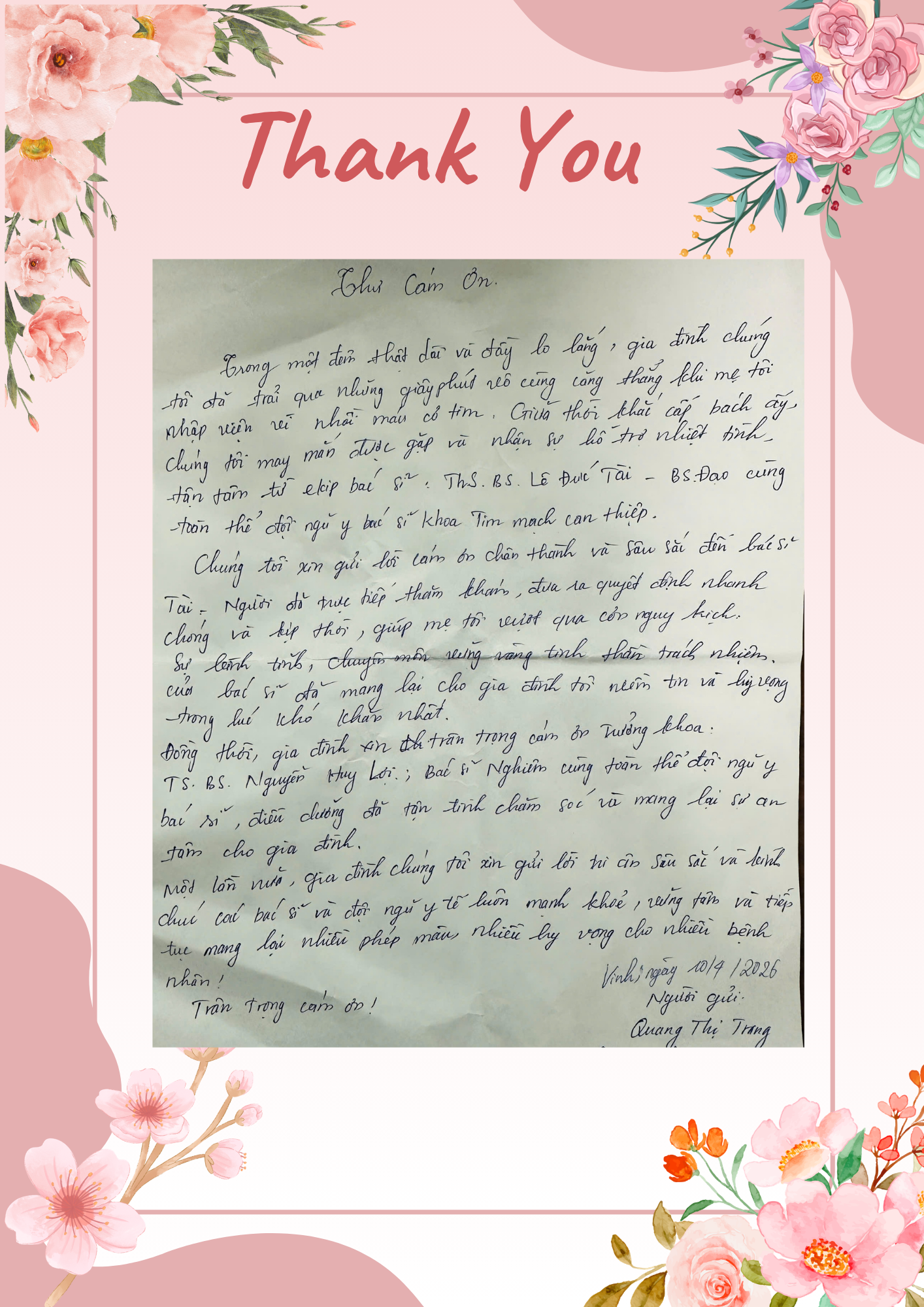 Mỗi lá thư là một câu chuyện, với những người làm ngành Y, đó chính là nguồn động lực để nhân viên y tế tiếp tục tận tâm, nỗ lực mỗi ngày để chăm sóc sức khỏe nhân dân. –Chúng tôi xin được trích lại bức thư của người nhà bệnh nhân gửi đến các […]