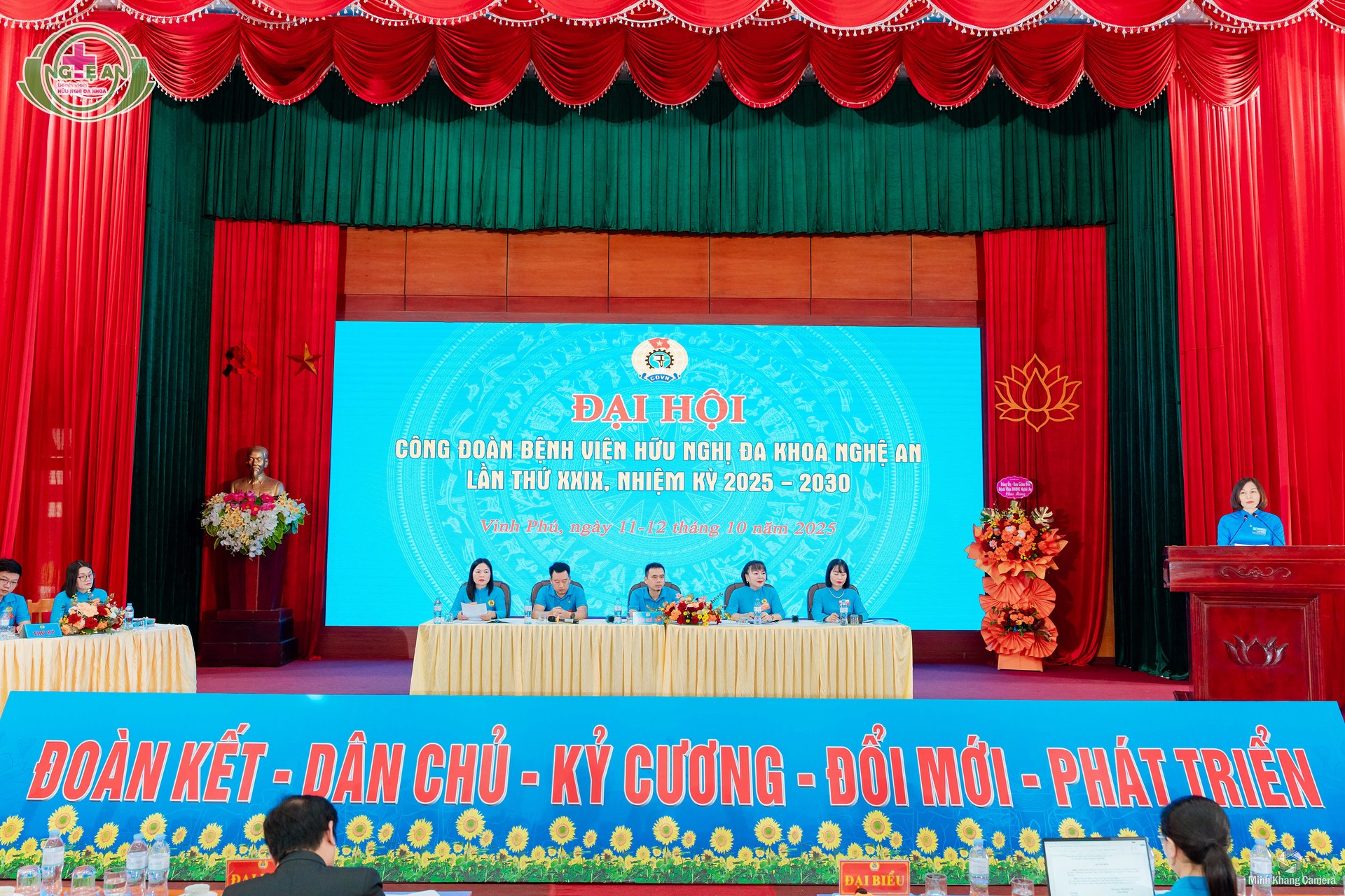 Sáng ngày 12/10/2025, Ban Chấp hành Công đoàn Bệnh viện Hữu nghị đa khoa (HNĐK) Nghệ An đã tổ chức thành công Đại hội đại biểu Công đoàn Bệnh viện HNĐK Nghệ An lần thứ XXIX, nhiệm kỳ 2025 – 2030.
