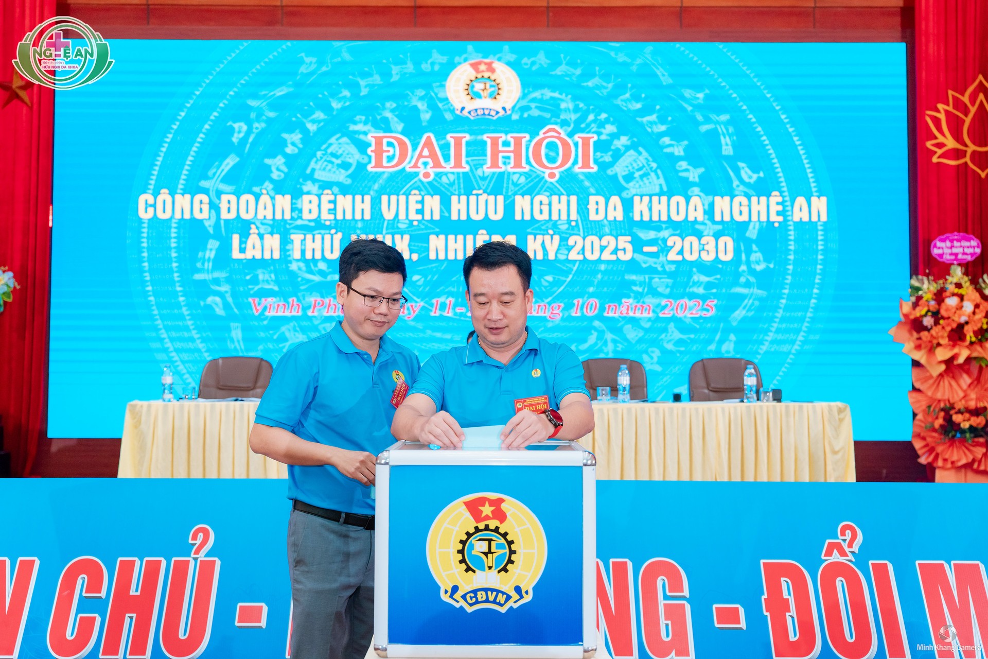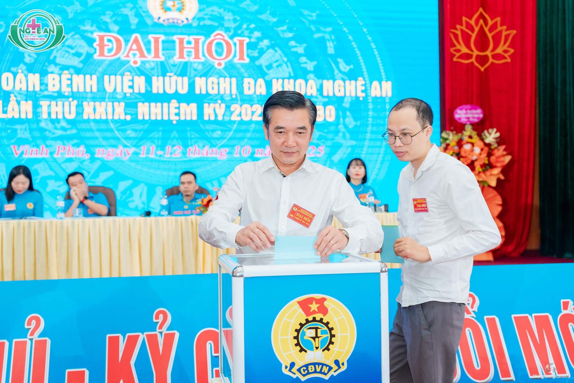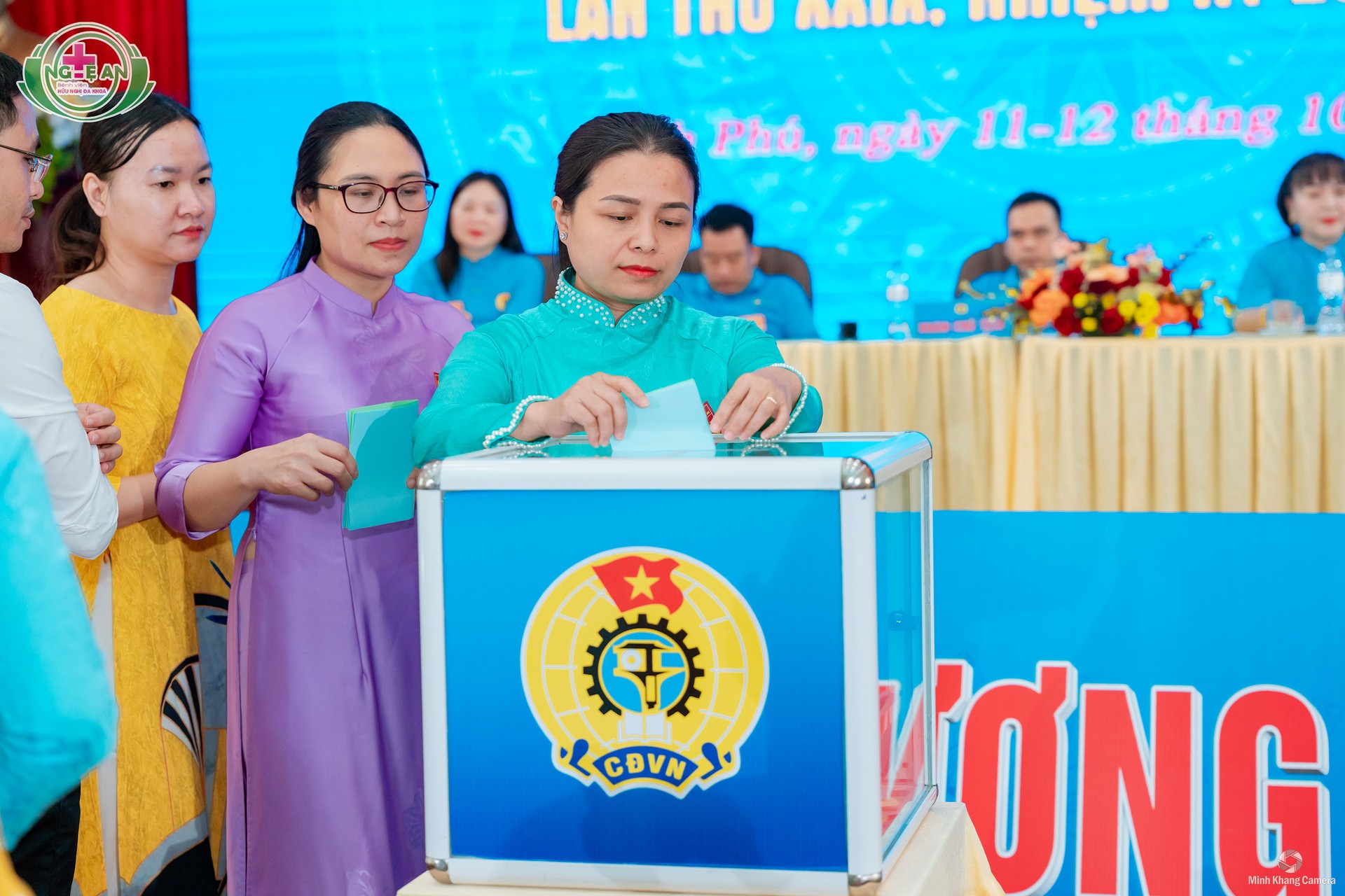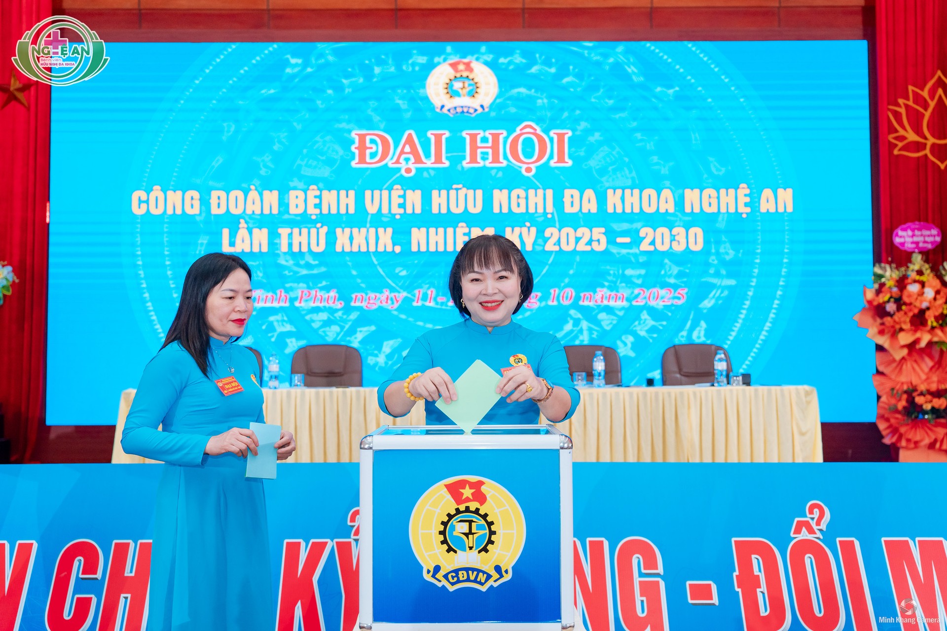 Với tinh thần làm việc khách quan, nghiêm túc, Đại hội đã bầu Ban Chấp hành Công đoàn Bệnh viện khóa XXIX, nhiệm kỳ 2025–2030 gồm 13 đồng chí. Với sự tín nhiệm cao, đồng chí Lê Thị Thanh Trà tiếp tục được tín nhiệm tái cử Chủ tịch Công đoàn Bệnh viện; đồng chí Chu Thị Kim Anh, đồng chí Nguyễn Thị Minh Hạnh giữ chức Phó chủ tịch Công đoàn bệnh viện. Đại hội cũng đã tiến hành bầu Đoàn đại biểu dự Đại hội Công đoàn phường Vinh Phú lần thứ I, nhiệm kỳ 2025–2030 gồm 20 đại biểu chính thức và 02 đại biểu dự khuyết.