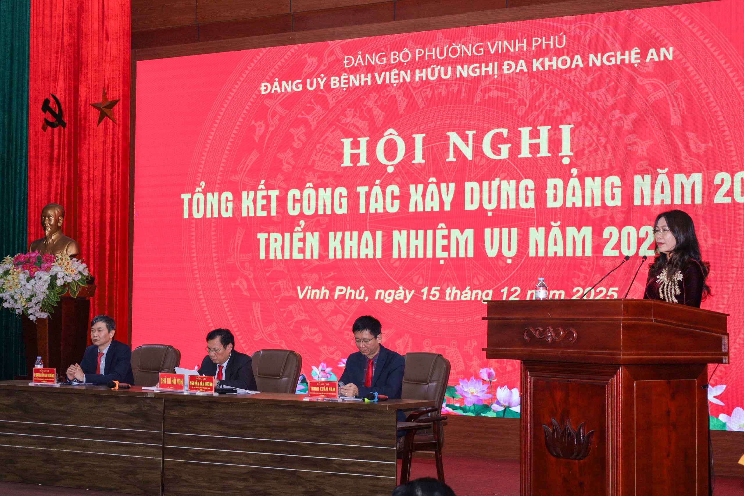 Thực hiện hướng dẫn số 01-HD/ĐU ngày 19/11/2025 của Ban Thường vụ Đảng uỷ phường Vinh Phú về kiểm điểm và đánh giá, xếp loại, khen thưởng đối với tập thể, cá nhân năm 2025.  Chiều ngày 15/12/2025, Đảng ủy Bệnh viện HNĐK Nghệ An long trọng tổ chức Hội nghị tổng kết công tác xây dựng Đảng năm 2025 và triển khai nhiệm vụ năm 2026.