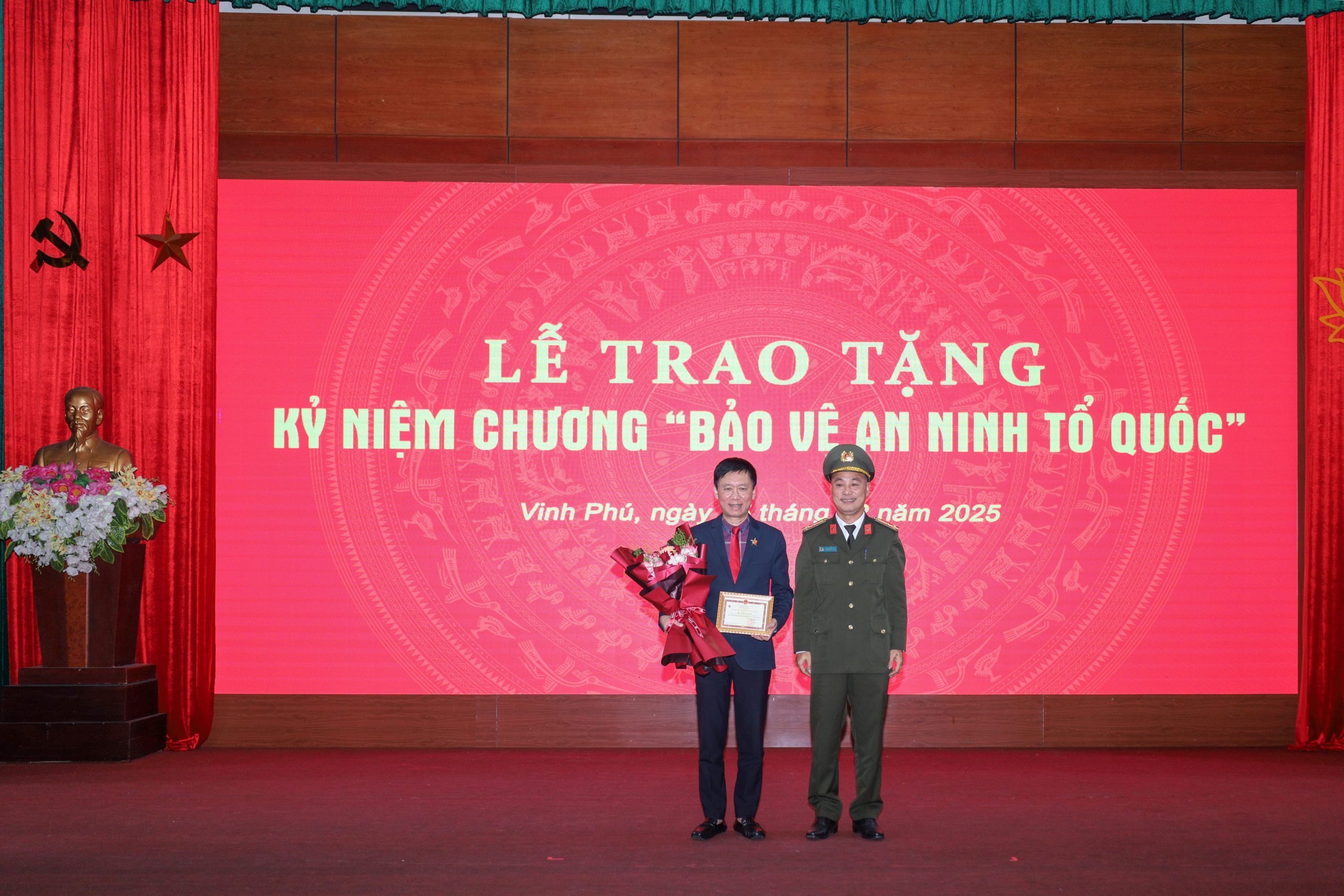 Tại Hội nghị, thừa ủy quyền của lãnh đạo Công an tỉnh Nghệ An, Thượng tá Trần Tuấn Anh – Phó Trưởng phòng PA03 đã trao tặng Kỷ niệm chương cho “Bảo vệ an ninh Tổ quốc” cho đồng chí Trịnh Xuân Nam – PBT Đảng uỷ, Chủ tịch HĐQL, Phó Giám đốc Bệnh viện.
