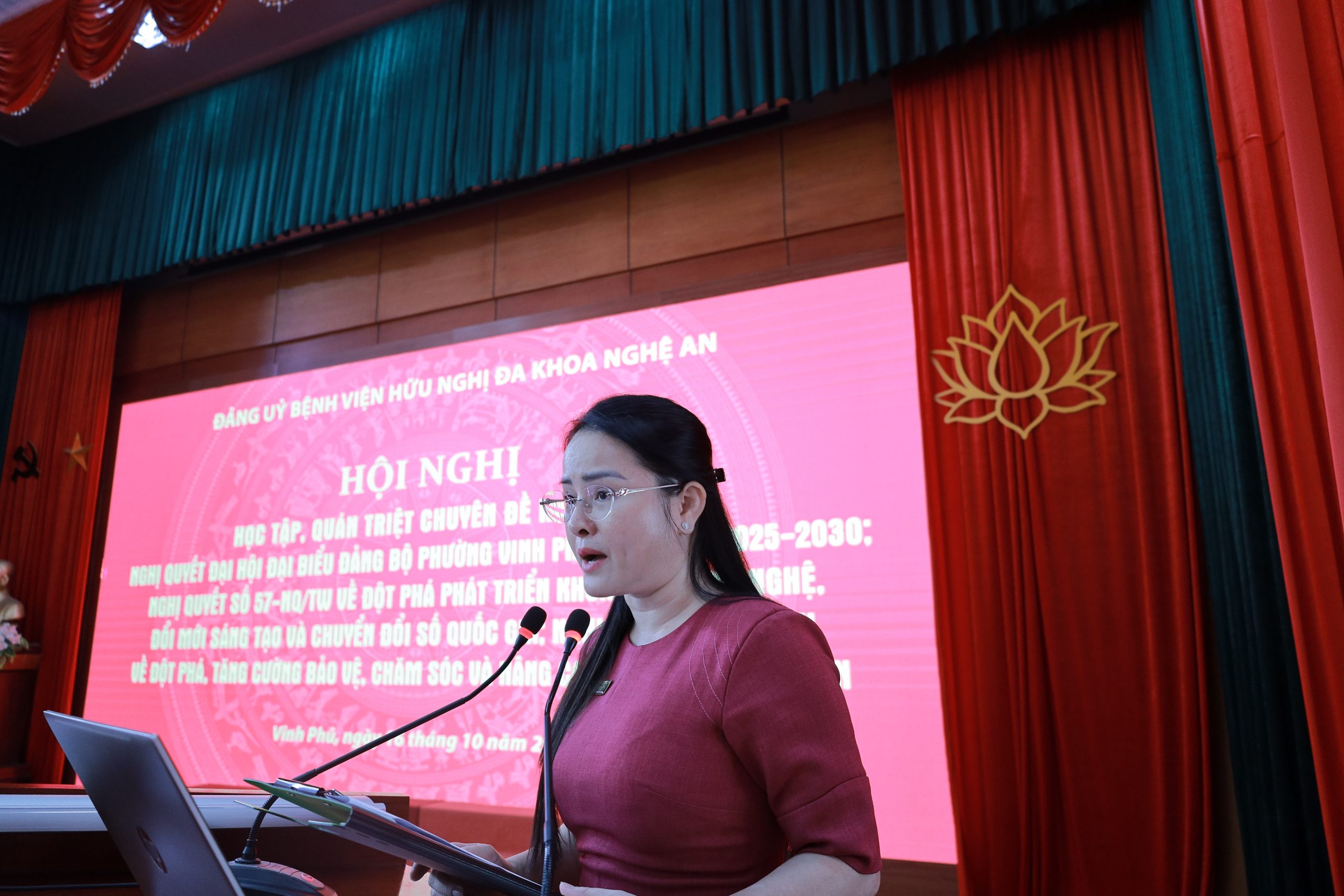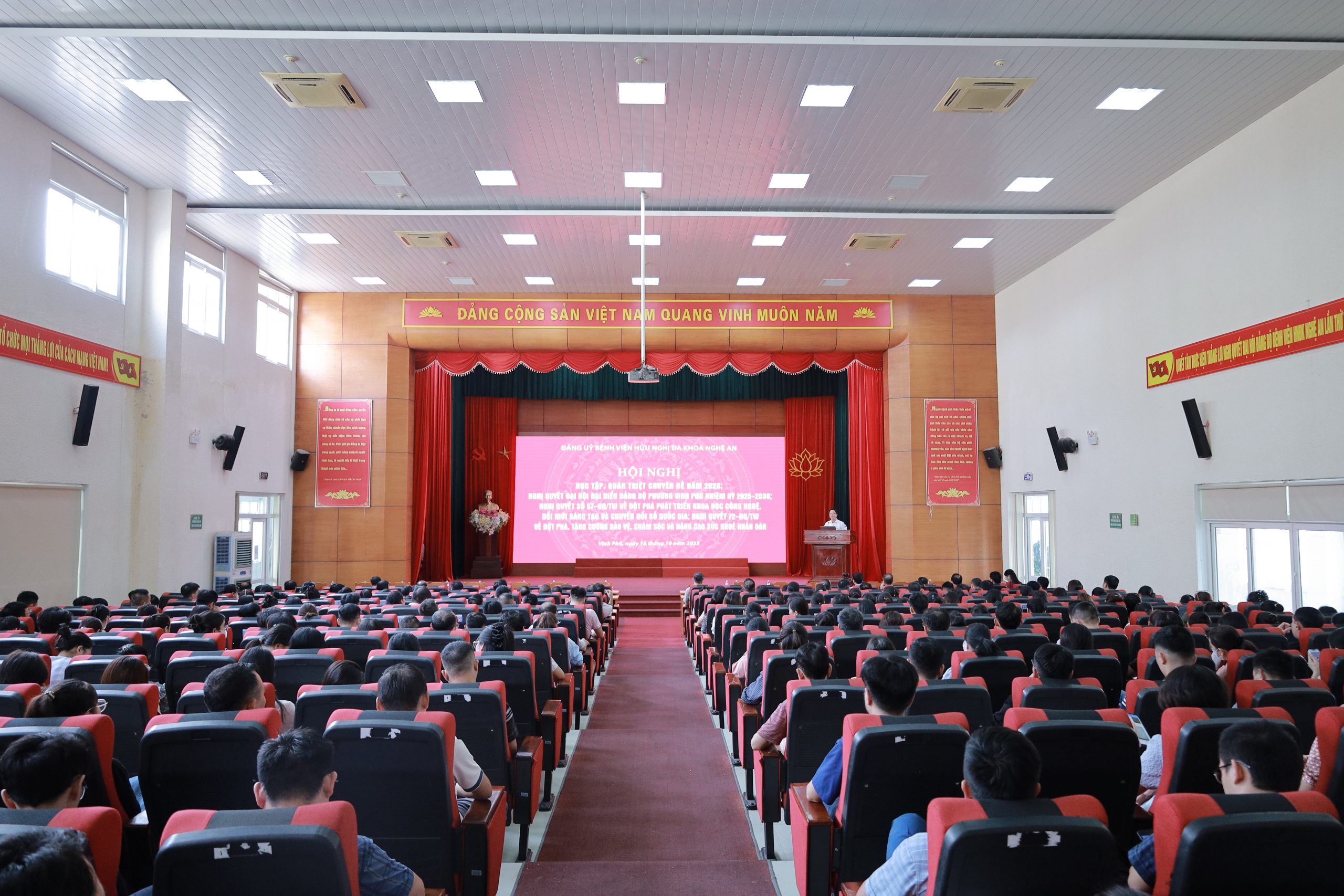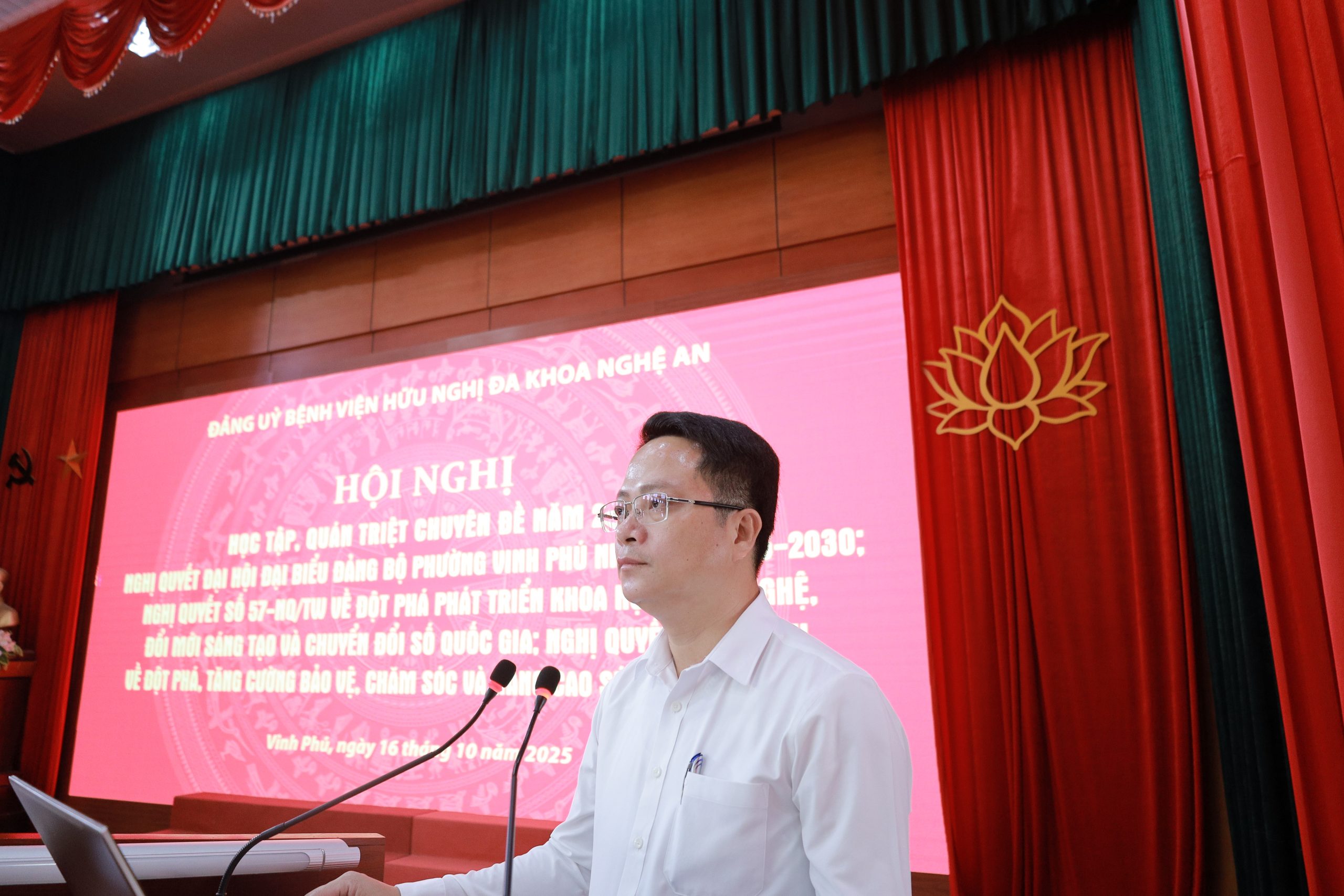 Chiều ngày 16/10/2025, Đảng uỷ Bệnh viện Hữu nghị đa khoa Nghệ An tổ chức “Hội nghị học tập, quán triệt các nghị quyết của Bộ Chính trị; Nghị quyết Đại hội đại biểu Đảng bộ phường Vinh Phú; Chuyên đề năm 2025 về Học tập và làm theo tư tưởng, đạo đức, phong cách Hồ Chí Minh”.