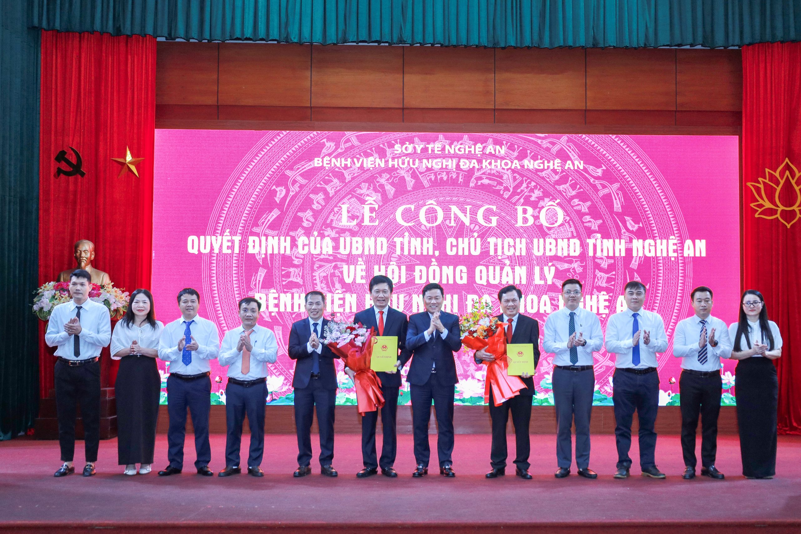 Sáng 5/12, Sở Y tế Nghệ An và Bệnh viện Hữu nghị Đa khoa Nghệ An tổ chức Lễ công bố các Quyết định của UBND tỉnh và Chủ tịch UBND tỉnh Nghệ An về Hội đồng quản lý Bệnh viện Hữu nghị Đa khoa Nghệ An. Tại buổi lễ, UBND tỉnh công bố quyết định thành lập, kiện toàn Hội đồng quản lý và quyết định bổ nhiệm Chủ tịch Hội đồng quản lý bệnh viện.