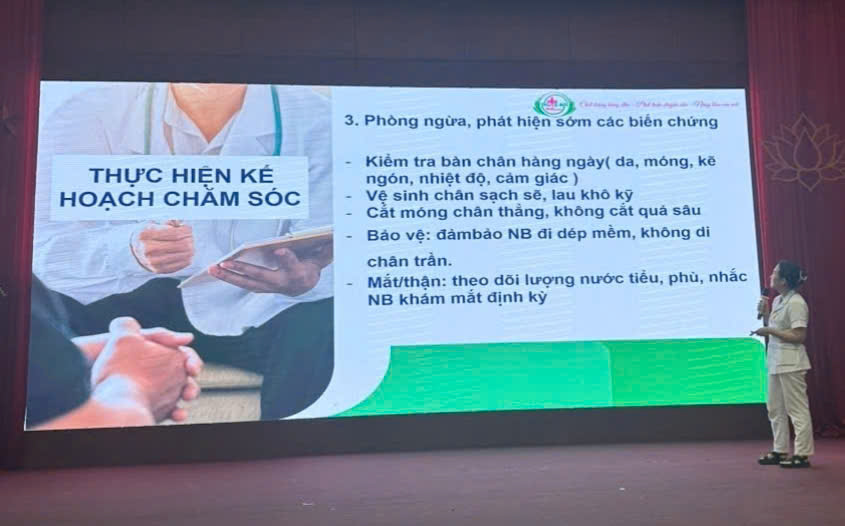 Tại buổi sinh hoạt, các nội dung trọng tâm về bệnh đái tháo đường đã được trình bày một cách hệ thống và dễ hiểu, bao gồm: tổng quan về bệnh, nguyên nhân, biến chứng thường gặp, cũng như vai trò quan trọng của điều dưỡng trong theo dõi, chăm sóc và hỗ trợ người bệnh trong suốt quá trình điều trị. Đặc biệt, chuyên đề nhấn mạnh việc theo dõi đường huyết, sử dụng thuốc, chăm sóc bàn chân, phòng ngừa biến chứng, hỗ trợ tâm lý và tư vấn lối sống lành mạnh cho người bệnh.