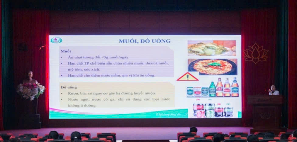 Bên cạnh đó, chế độ dinh dưỡng hợp lý cho người bệnh đái tháo đường cũng là nội dung được quan tâm hàng đầu. Các nguyên tắc xây dựng khẩu phần ăn khoa học, cân đối giữa các nhóm chất, hạn chế đường và tinh bột nhanh, tăng cường chất xơ, rau xanh, cùng việc chia nhỏ bữa ăn trong ngày đã được chia sẻ cụ thể. Điều này giúp người bệnh kiểm soát tốt đường huyết, nâng cao hiệu quả điều trị và cải thiện chất lượng cuộc sống.